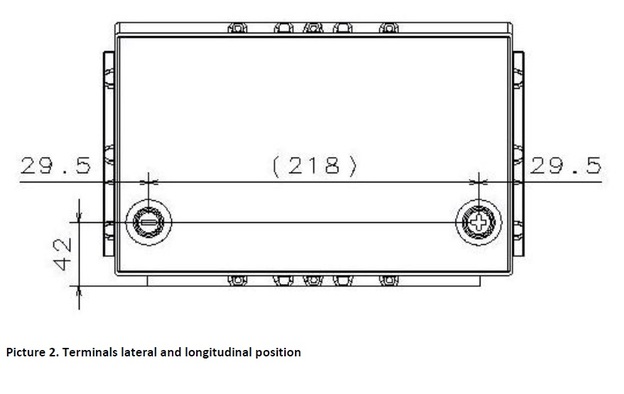- Terminals lateral and longitudinal location measurement should remain the same as on attached file „LitePlus battery base“. See picture 2.