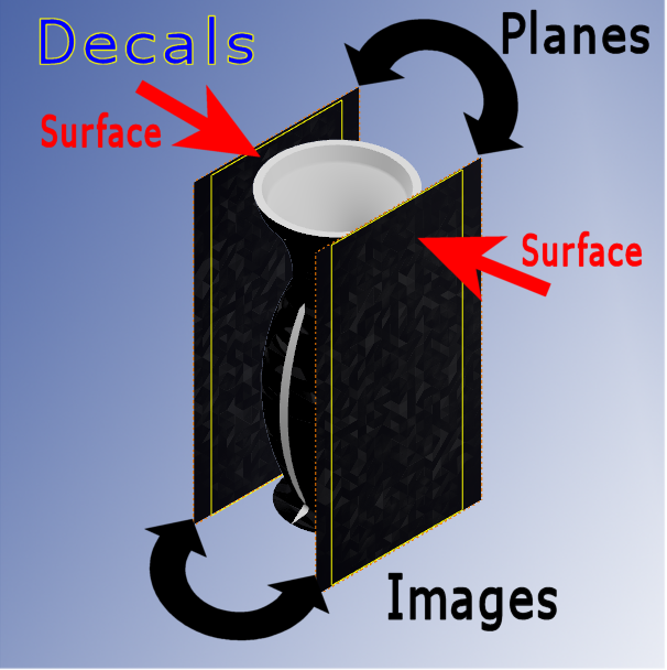 Secondly your image was on the centre plane to use it as a decal you have to put planes on the right and left side of your model then new sketch with image then decal both to nearest surface.