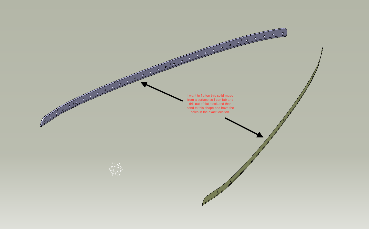 Anyone know how to flatten this solid made from a surface so I can fab and drill out of flat stock and then bend to this shape and have the holes in the exact location.