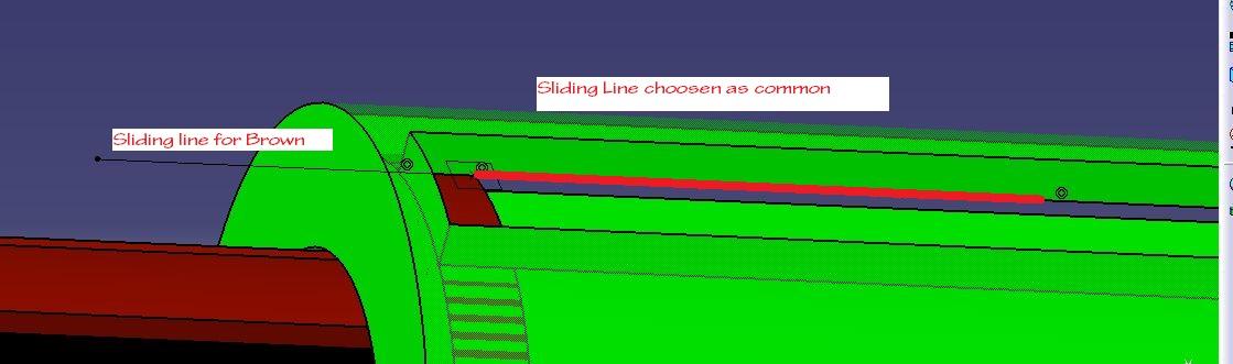 In this, I have created a line using point on brown part as it doesn't have any tooth structure as in above example (two lines are ready for prismatic joint)