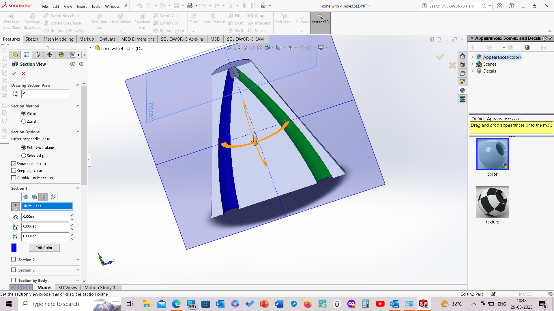 Hey guys, I am having trouble sweep cutting this feature out. I'm making a nozzle that has 4 converging holes from .5" to a single .25" diameter hole. When I try the swept cut feature I am getting an errors. Is the swept cut feature even capable of handling different diameter ends? Or any recommendations on how I should go about this?
