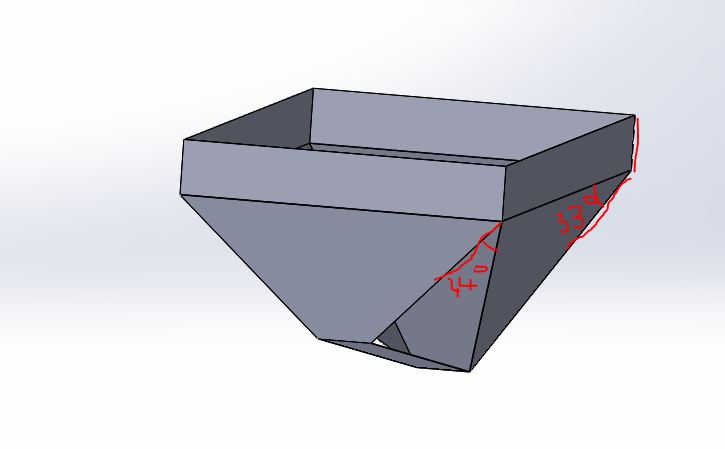 i am doing a design of a hopper , but have a problem , the empty part can`t find a feature to charge it and make it continuous with the other part above cause the sketch is between two planes . what is the solution for this advanced feature ?