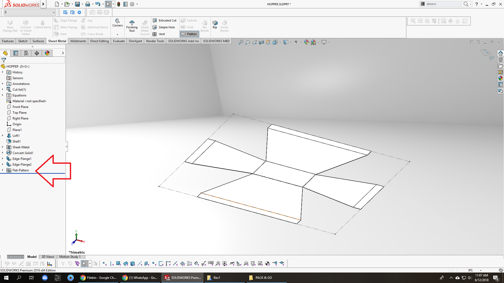 sometime you can creat solid model but later convert to sheet melal. place give a file I look