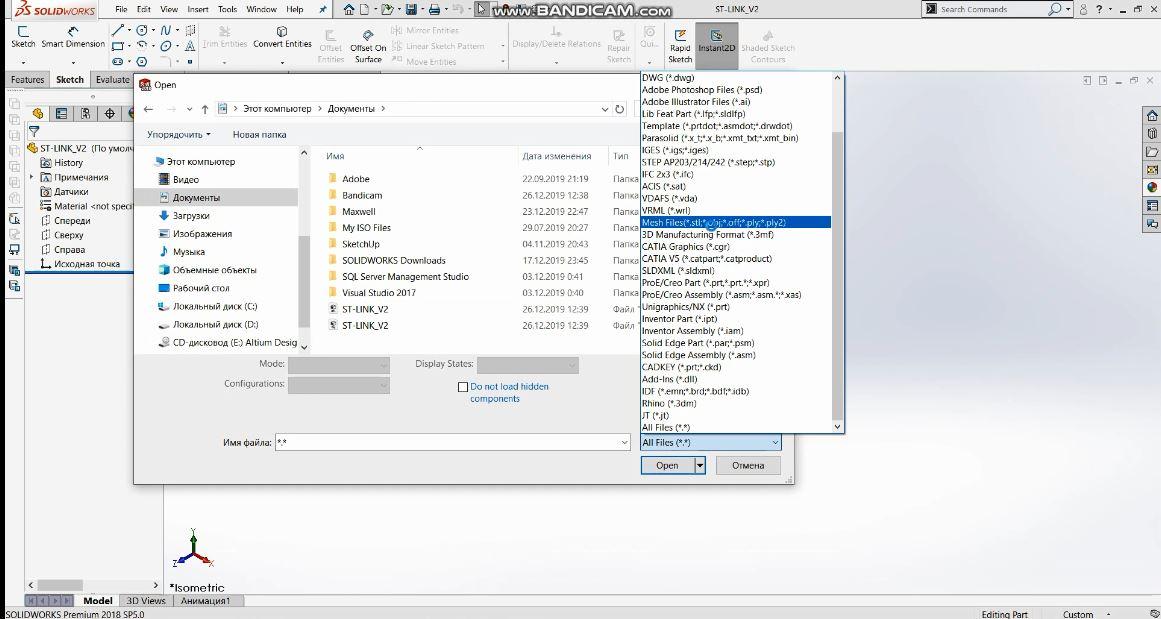 solidworks 2017/18 can open .obj mesh file but sw15 hasn't this option..