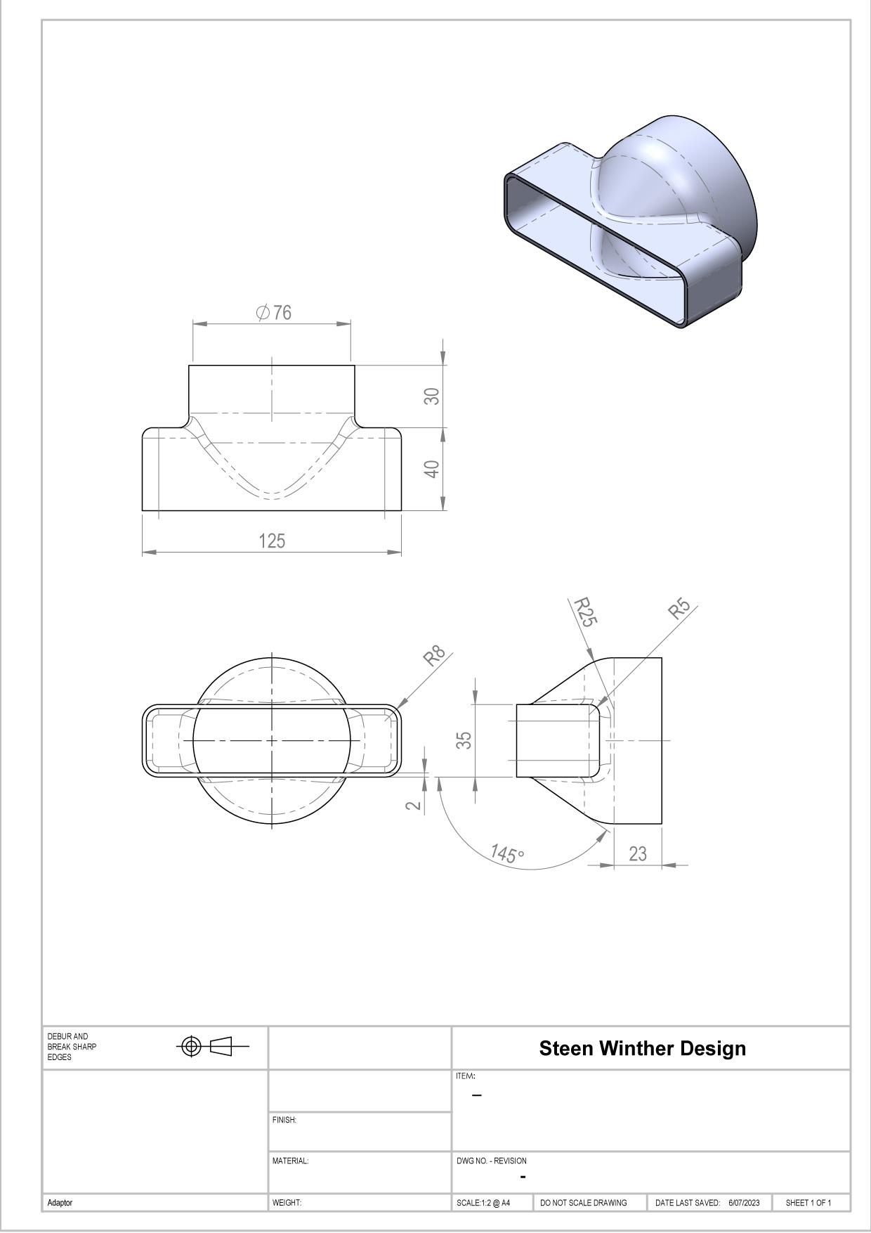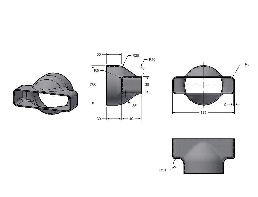 Nice little model. The only missing dimension is the length of the straight ø80 section. It is an easy model if you choose a simple approach, but I suspect that it could prove troublesome if you try to do too much in one step...?