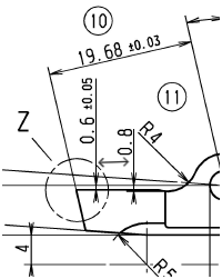 The left side of the part is fairly complex with lots of features requiring many dimensions. I believe the 0.8 dimension defines the lowest point of the R4 curve. The 0.6 dimension defines the offset distance from the center to the left flat, which the R4 curve extends to.