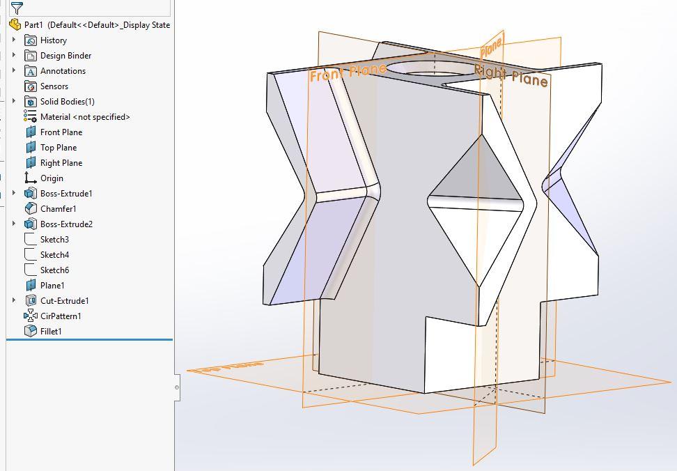 3D 모델링 도와 주실 분 계신가요? Dong Hwi Kim 12 Jul, 2022 12:53 AM 첨부 파일을 3D 모델링을 구현 하고 싶은데 어려워서 질문 남깁니다. 트리 보고 연습을 하고 싶은데 도와주실 분 계신가요? 첨부파일 참고 부탁 드리겠습니다.! 솔리드웍스, 인벤터 구현 가능 하신걸로 부탁 드리겠습니다.! 캡처.PNG Accepted answer J. Riend Answered on 13 Jul, 2022 02:34 AM Here is an approximation. original.JPG 0 Other answers