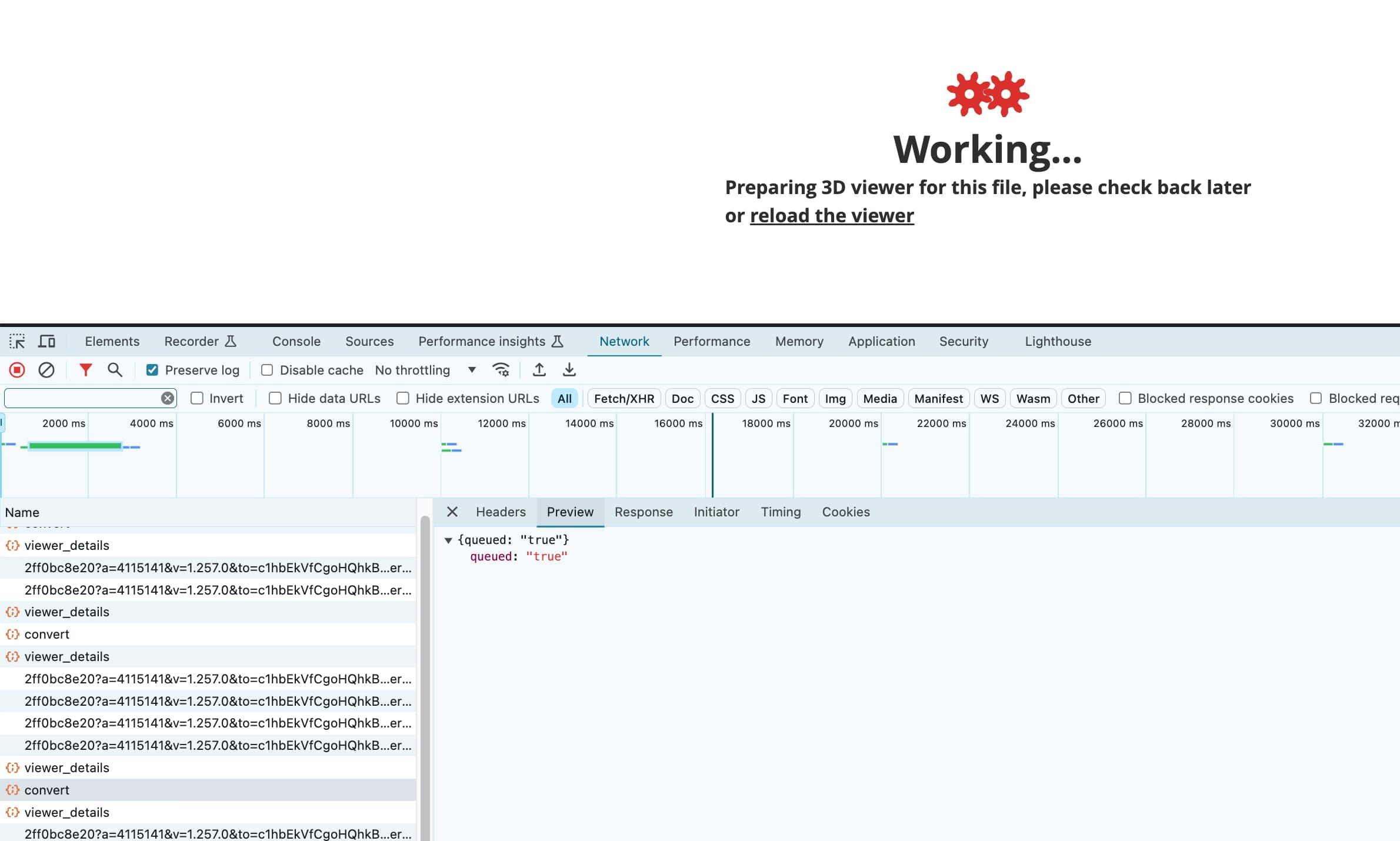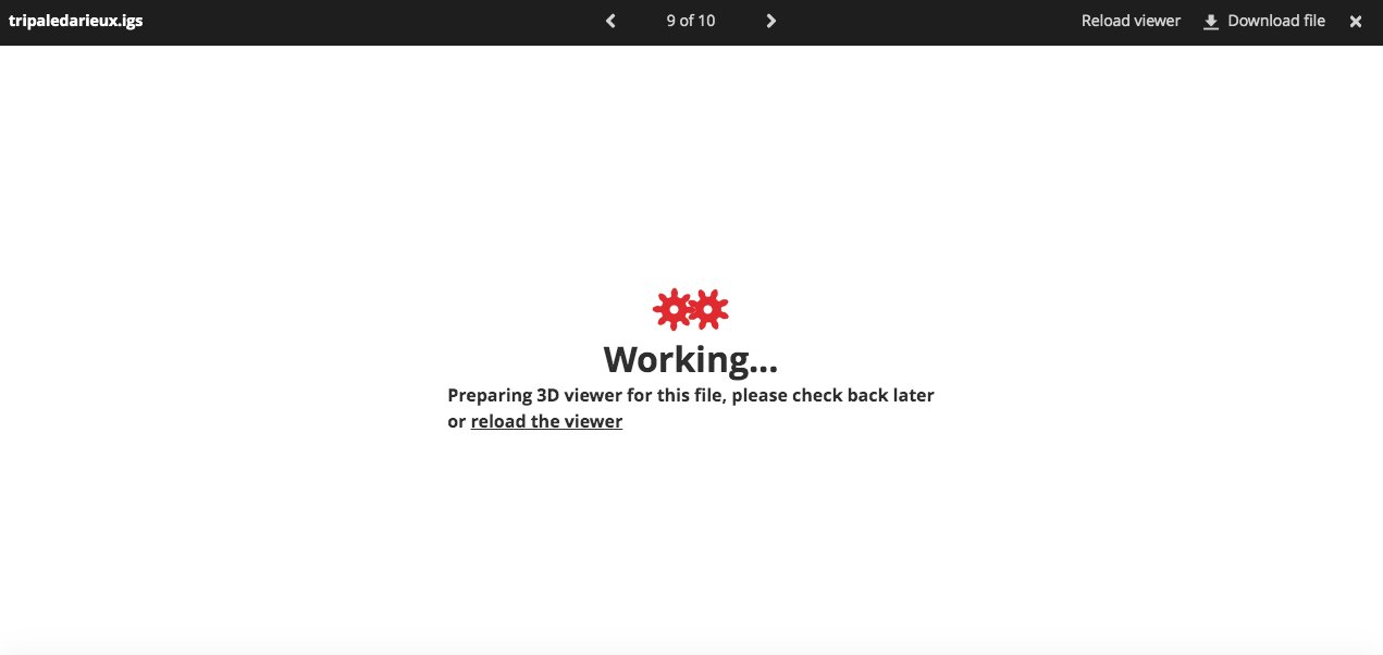 We have uploaded one STEP file and it worked just fine. After reuploading it again after few minutes it is not rendering/viewer of 3D file is not loading this file at all.