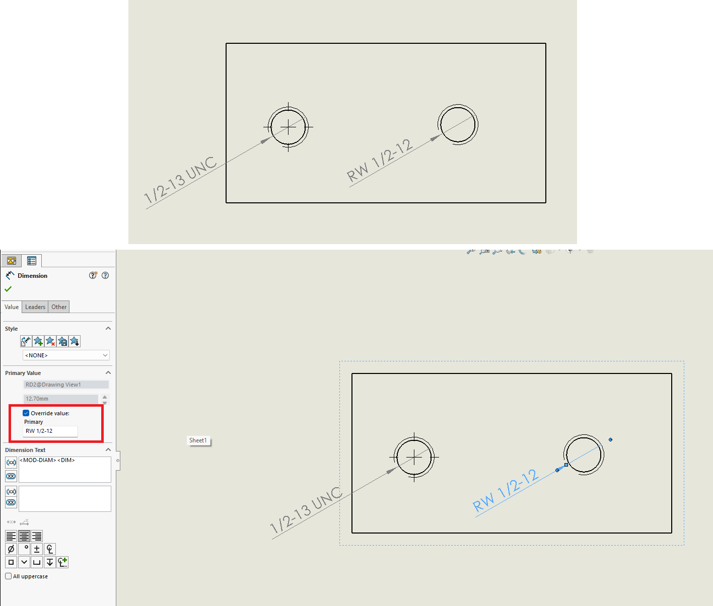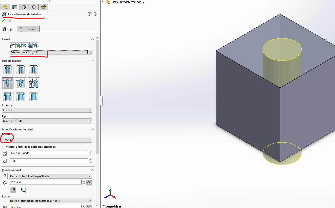Si yo modifico como vos me decís en la herramienta, luego en el plano al acotar me sigue apareciedo 1/2"-13 UNC.