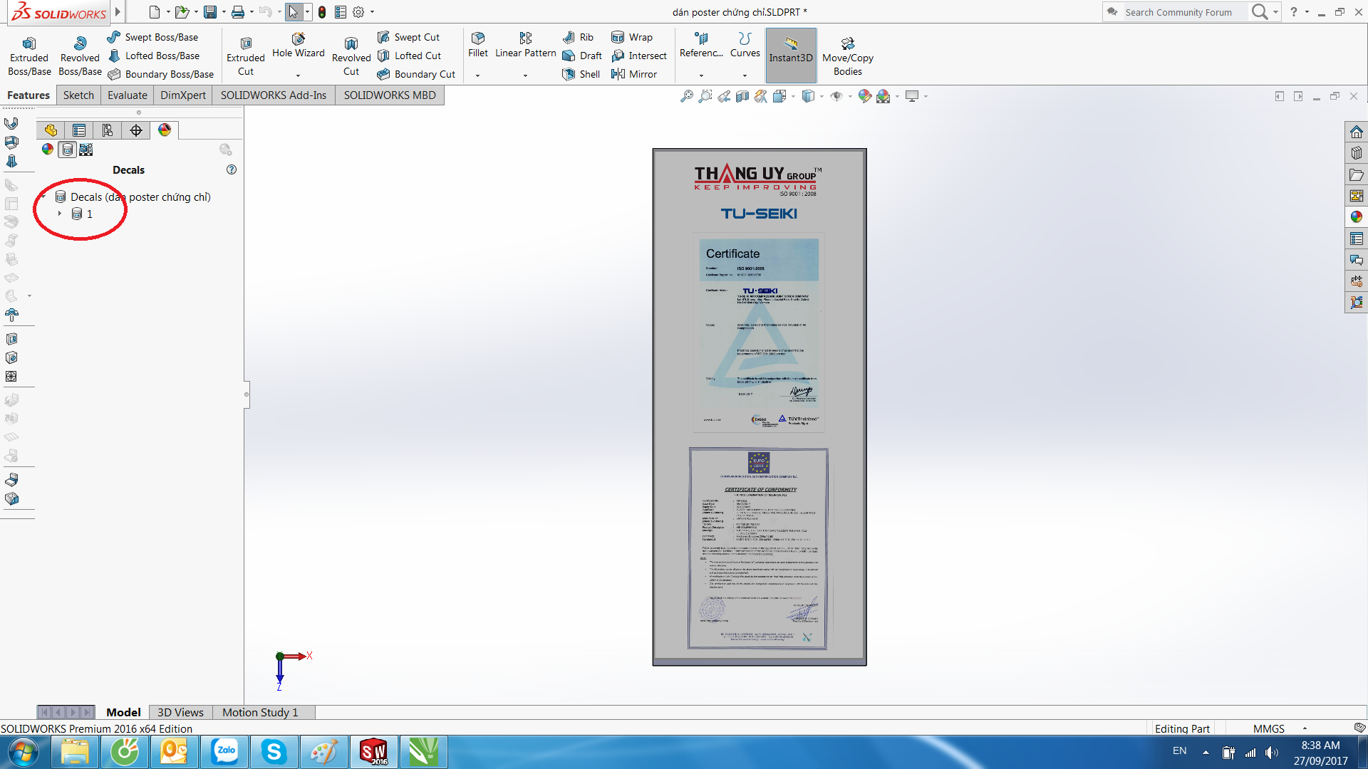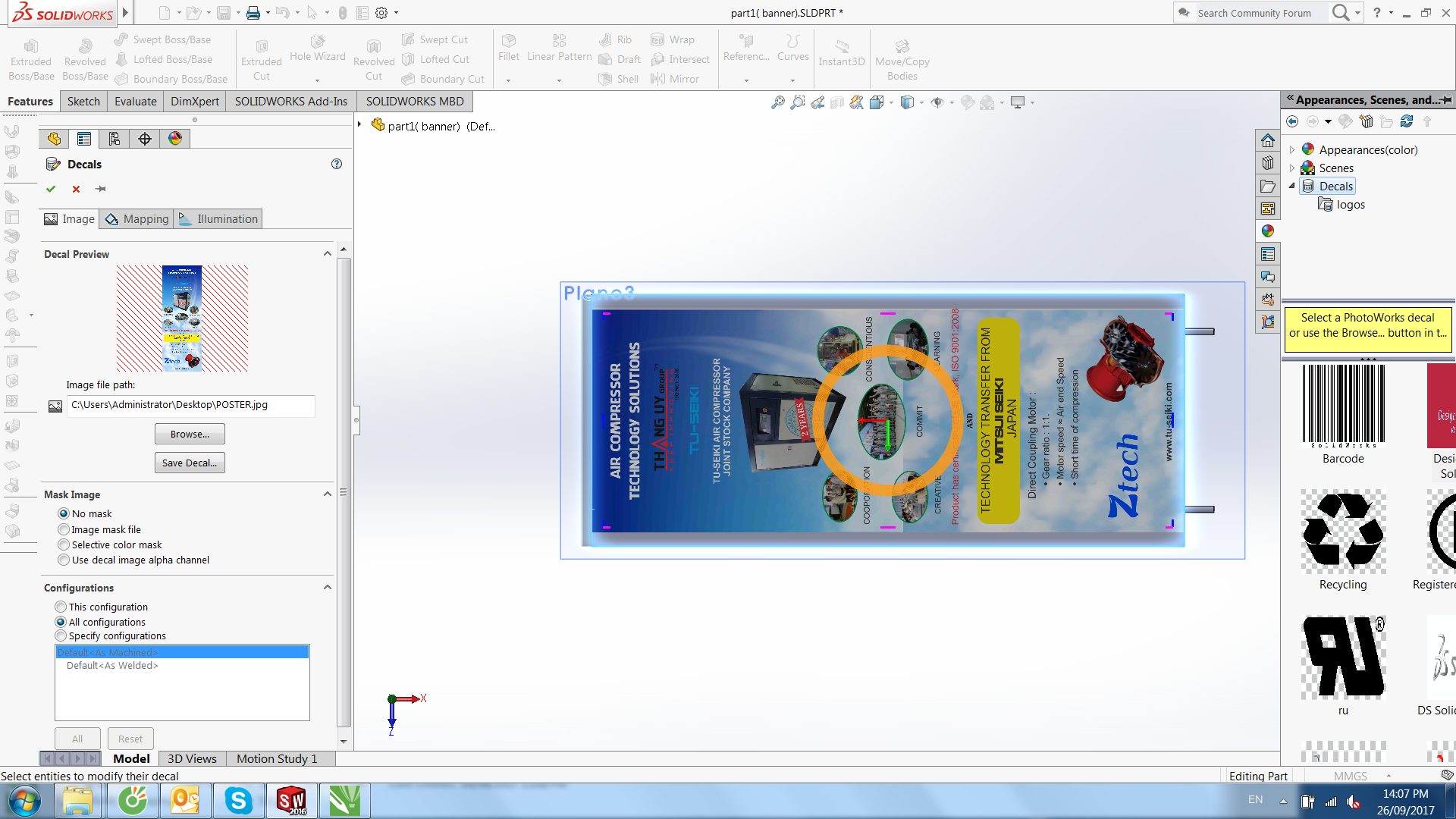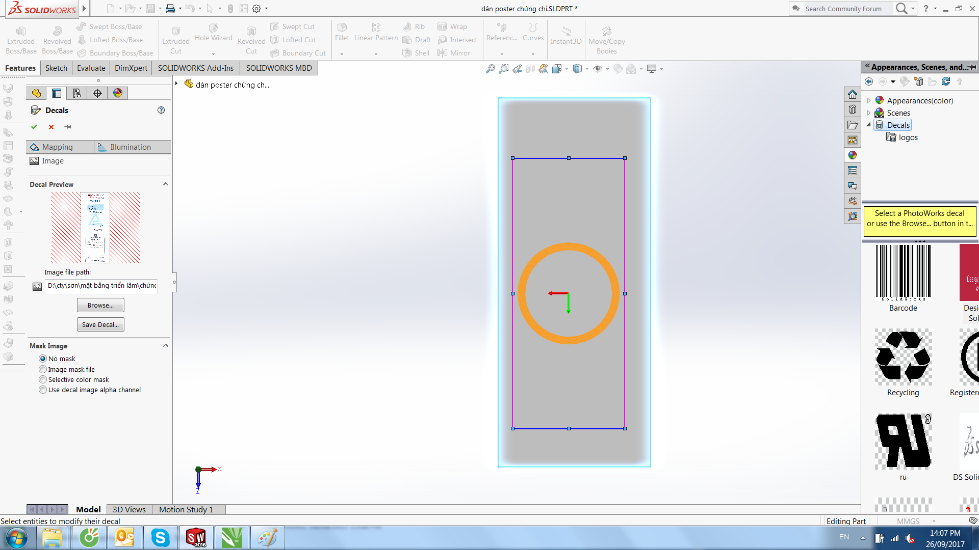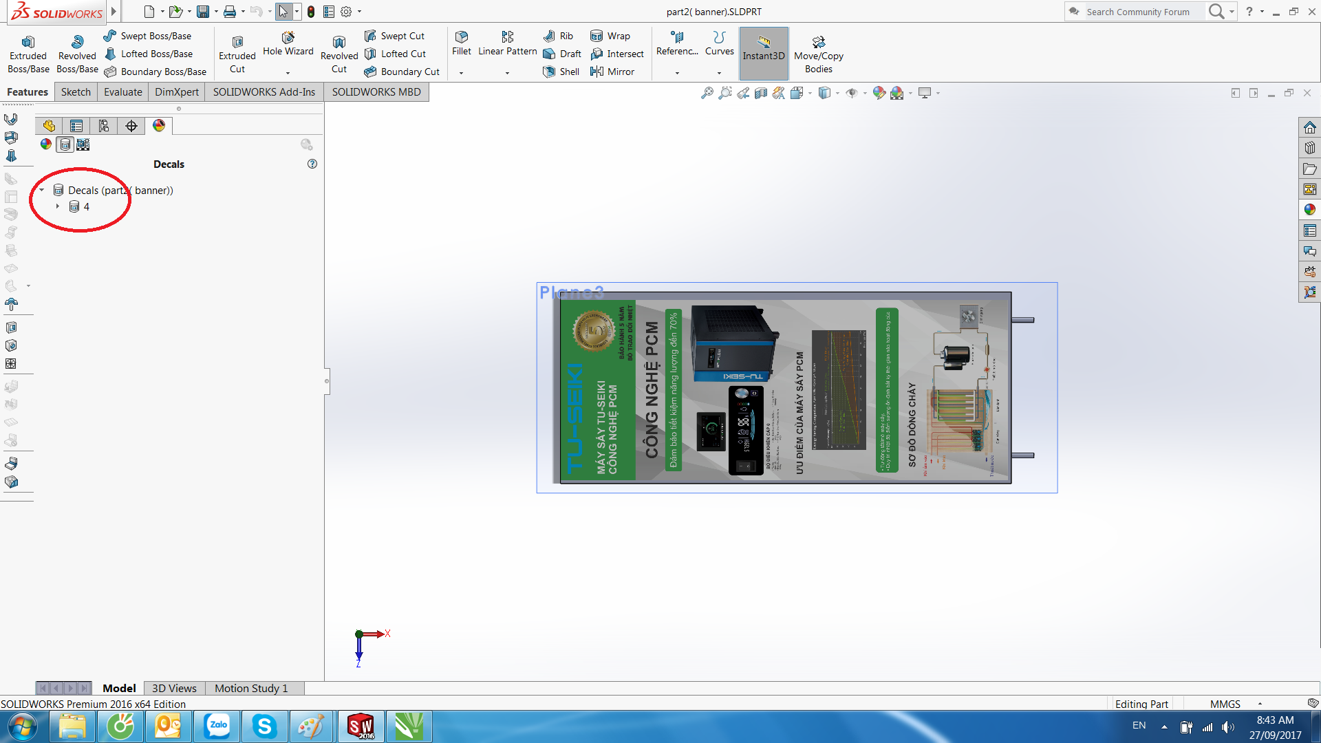 Adding decal in solidworks Sơn Trịnh 26 Sep, 2017 07:09 AM I'm trying to add some decal in solidworks. Some picture when i add it's appear, but some can't. Any one know what is the different? 5.png 6.png 2 Answers Sơn Trịnh Answered on 27 Sep, 2017 01:44 AM Unbelievable!! When i change the name of picture to number, it's show up in decal... Can't understand this. Untitled2.png Untitled.png Richard Barber Answered on 27 Sep, 2017 10:01 AM did the original name contain vn characters? i've seen other software not able to handle filenames with international character sets.