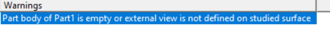 "Part body of Part 1 is empty or external view is not defined on studied surface."