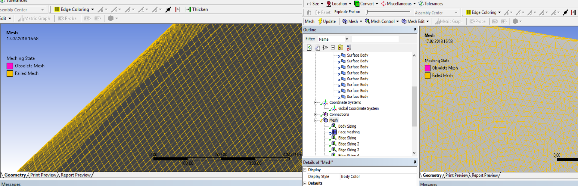 hello guys l am trying mesh my wing for fea analysis but my mesh giving bad result for up skin but bottom skin givin fine how can l fix this