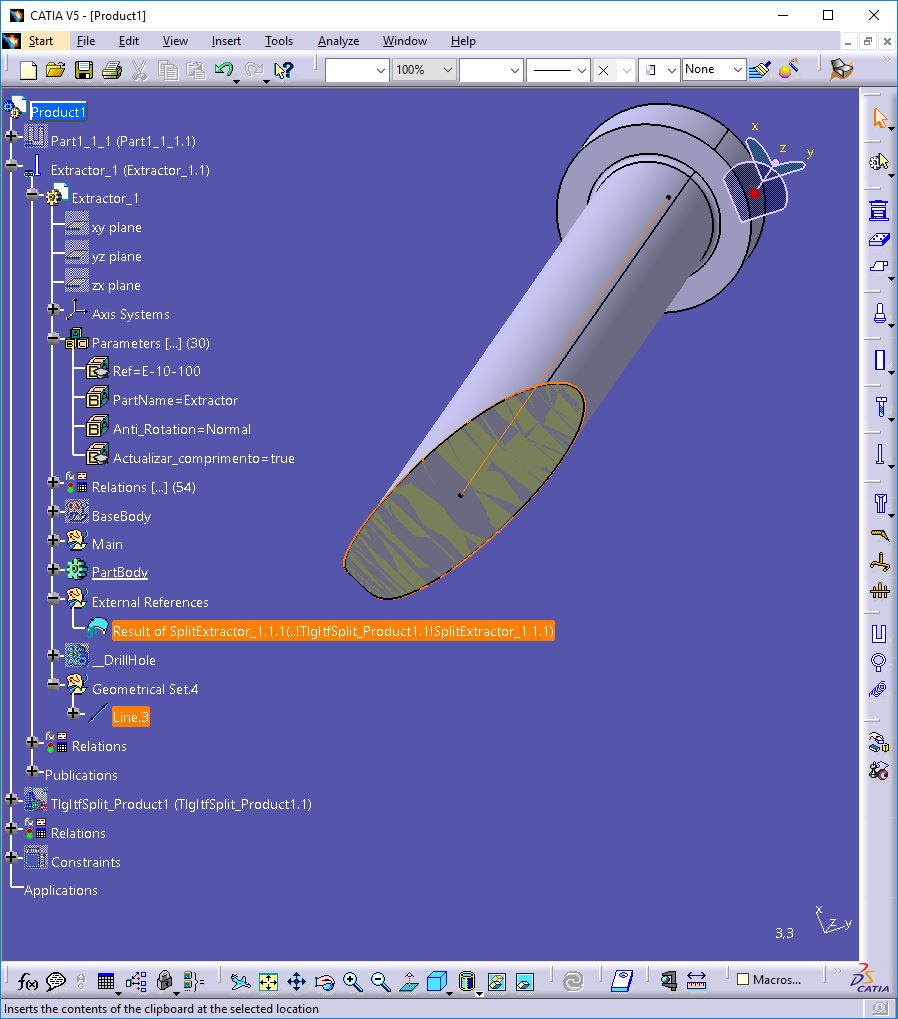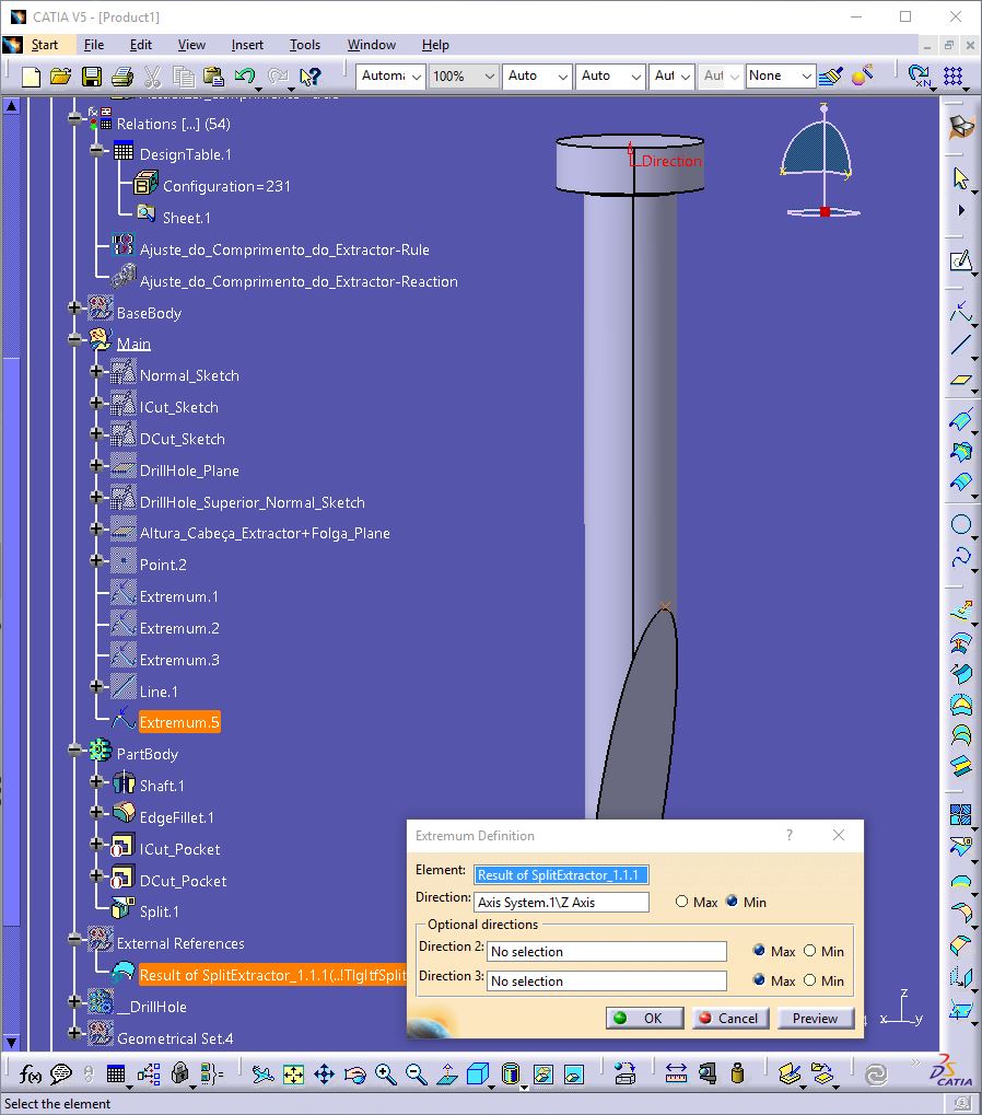 -Because I could use the PartBody I've created a line and extremums (X,Y,Z) that goes from the extremum (Max) of the split intersection to the XY Plane; This will serve other purposes.