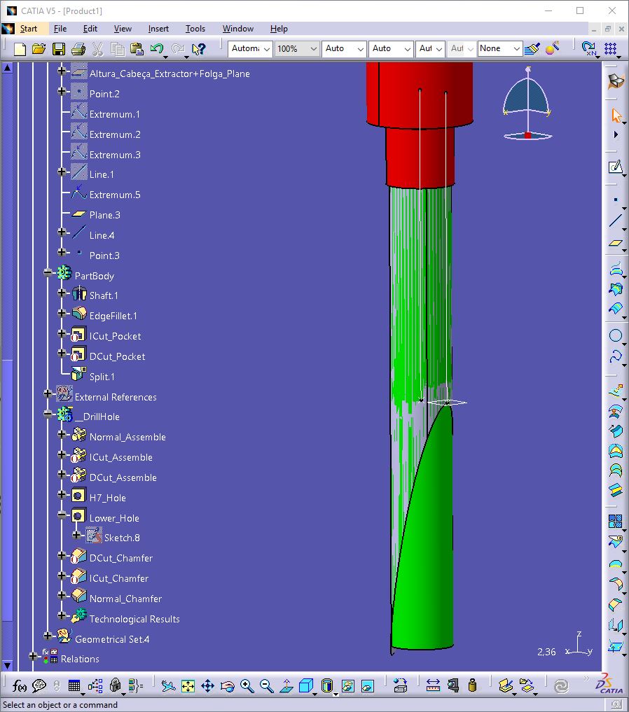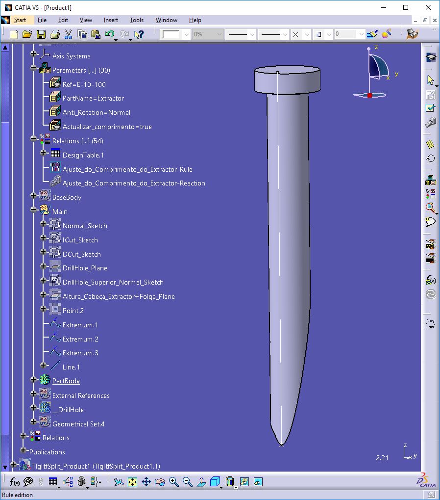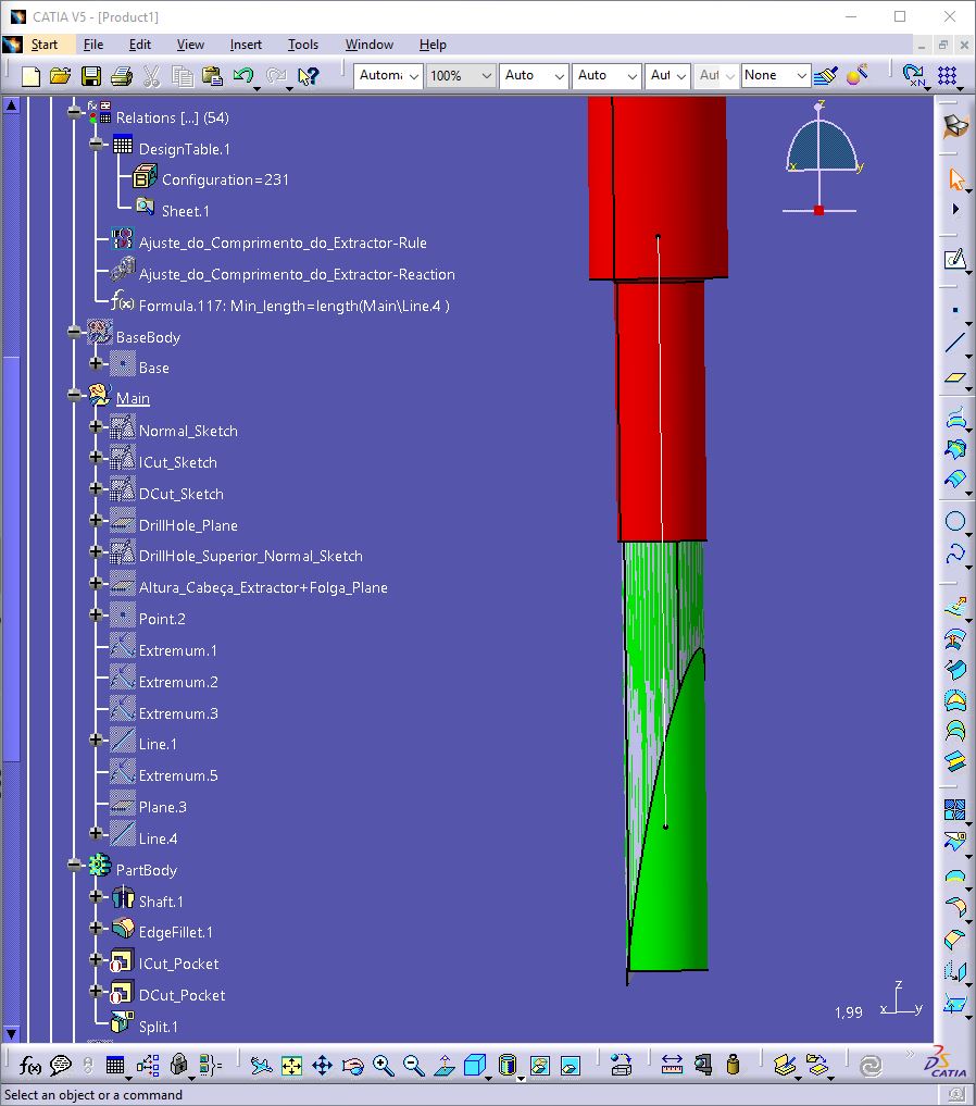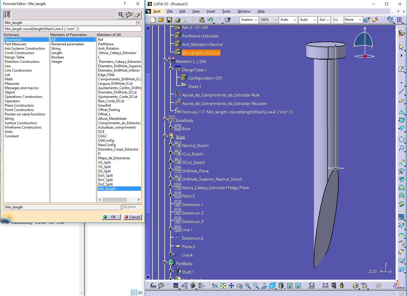 the user inserts, in the correct position via Mold Tooling Design, as many ejectors as required (i'm going to use one to simplify the matter, further explain the issue i'm dealing with and show in detail what i've done so far). Because the ejector is parameterized the user can choose a desired length and diameter (i'm choosing one manually although with a catalog this will not be done unless required)