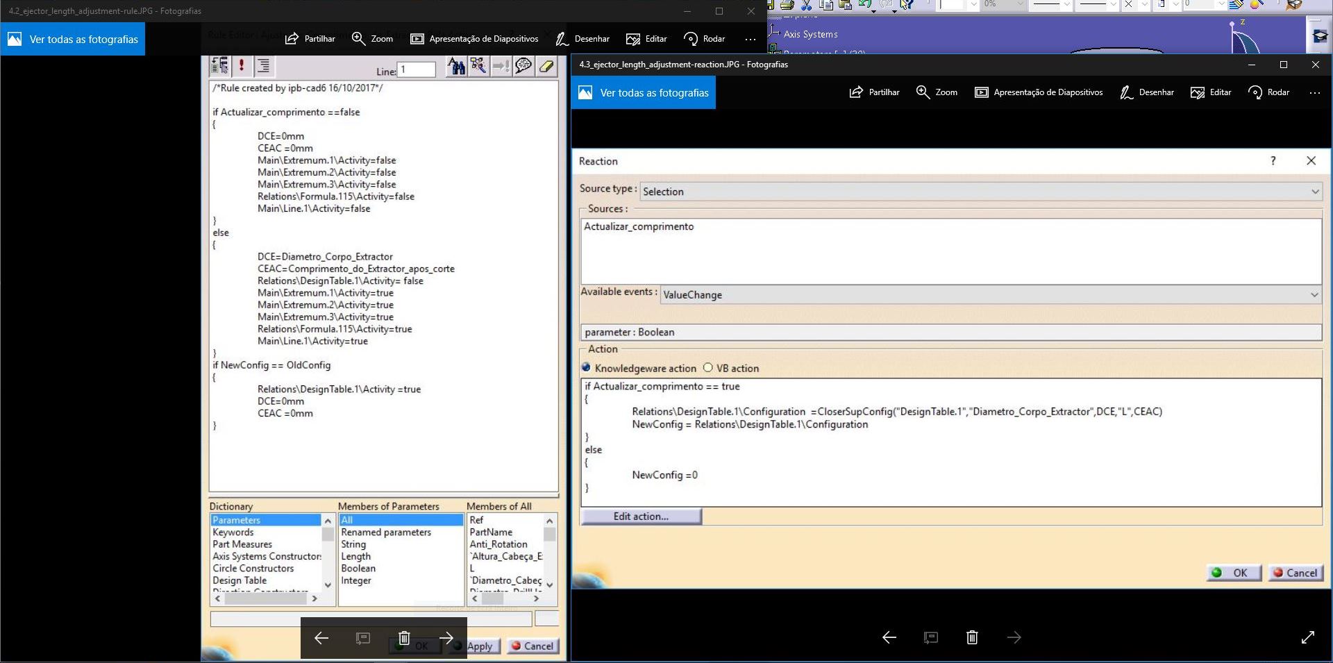 i have managed to accomplish the Max: using the rule "ejector length adjustment" and reaction "ejector length adjustment" 3 extremums (x,y,z) and a line that were previously created activate when a set parameter is changed, automatically giving me the length of the line and adjusting the actual ejector to the closest superior one to the line's length.