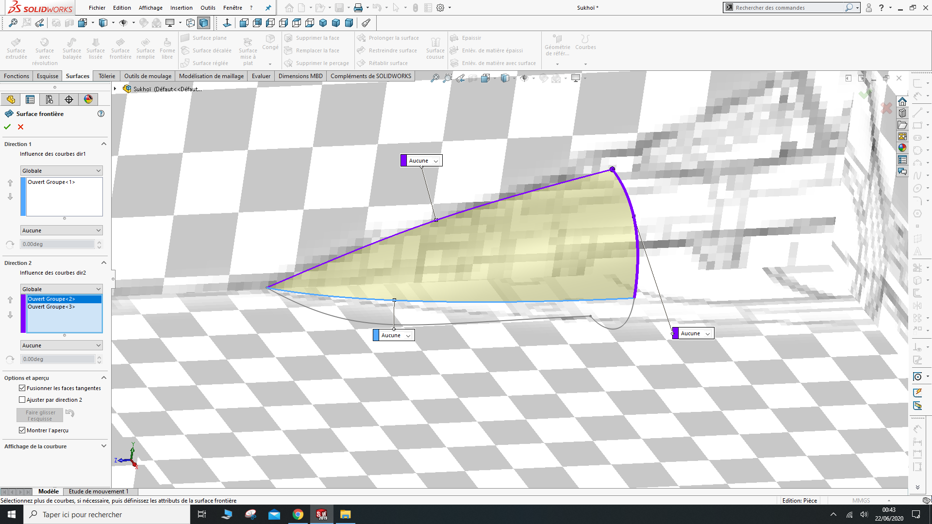 I started playing with surfaces (so i started an aircraft project), and i can't figure out how to do a simple looking surface. There are only 3 splines, and I want to do the surface with "Boundary surface". (is it the right option ?)