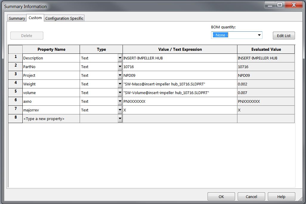 2. I use some additional custom properties in the part for the major revision (mine is called 'majorrev') and one called 'axno' for the MRP number, which changes if the major rev changes, but not the minor. I should have called it 'mrpno' because they're switching to SAP. Live and learn.