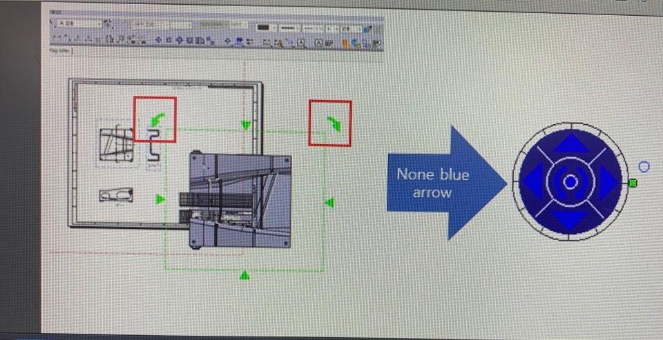 The blue arrows appear when creating a new view on your CATIA drawing.