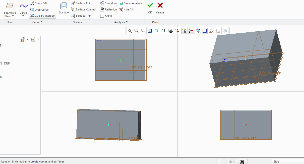 can i add multiple views in same window for a part in pro e? Lat 13 Jun, 2014 07:41 PM like in blender 1 Answer Harshit Khoda Answered on 27 Jun, 2014 12:42 PM yes, this is possible in style . just go to model> style > show all view. you can get all view as show in pic. 1.PNG 2.PNG 3.PNG