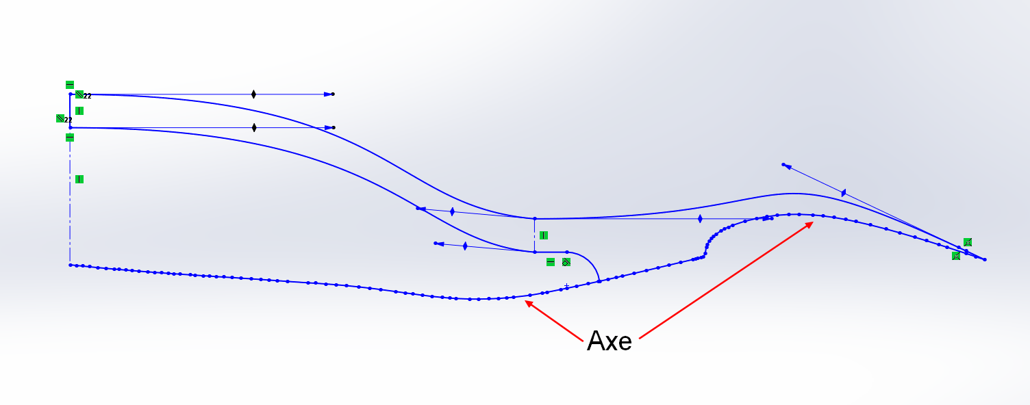 3. draw a guide path on the front plne, and then use the loft boss/base feature where the profiles selected would be the 2 new circles, and the guide path would be the one made recently.