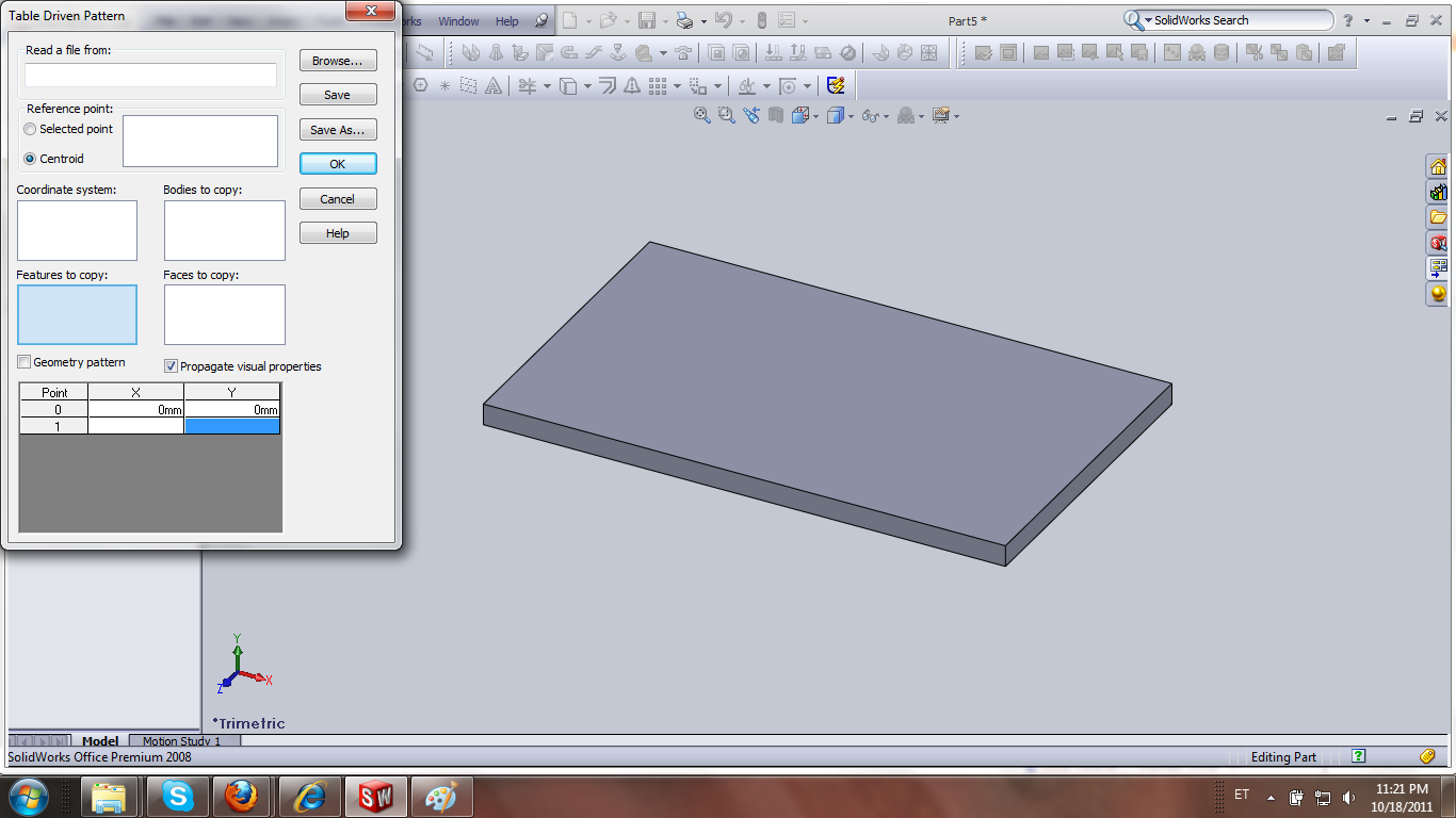 You have to create a coordinate system and select the coordinate system for the "coordinate system" box. Also make sure that you select a reference point or a centroid. So in all to get it to work you need four things: coordinate system, reference point, something to pattern, and at least one table entry for position
