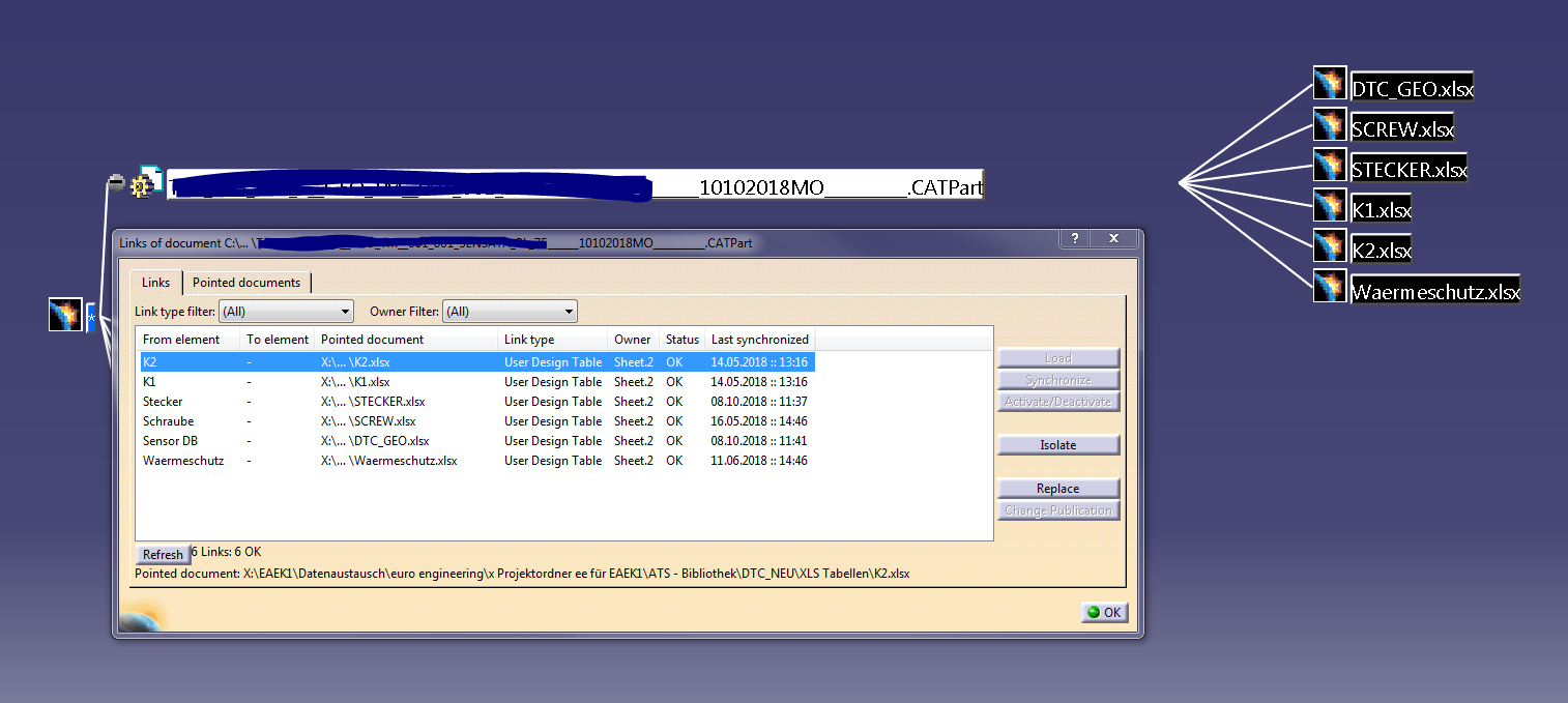 Jack Knapp: as you can see in image 1, the CATPart is linked with 6 excel lists in drive X. I moved all these 6 list to another folder and want to redirect the CATPart to them, for ex. drive C. I had to replace them one by one.
