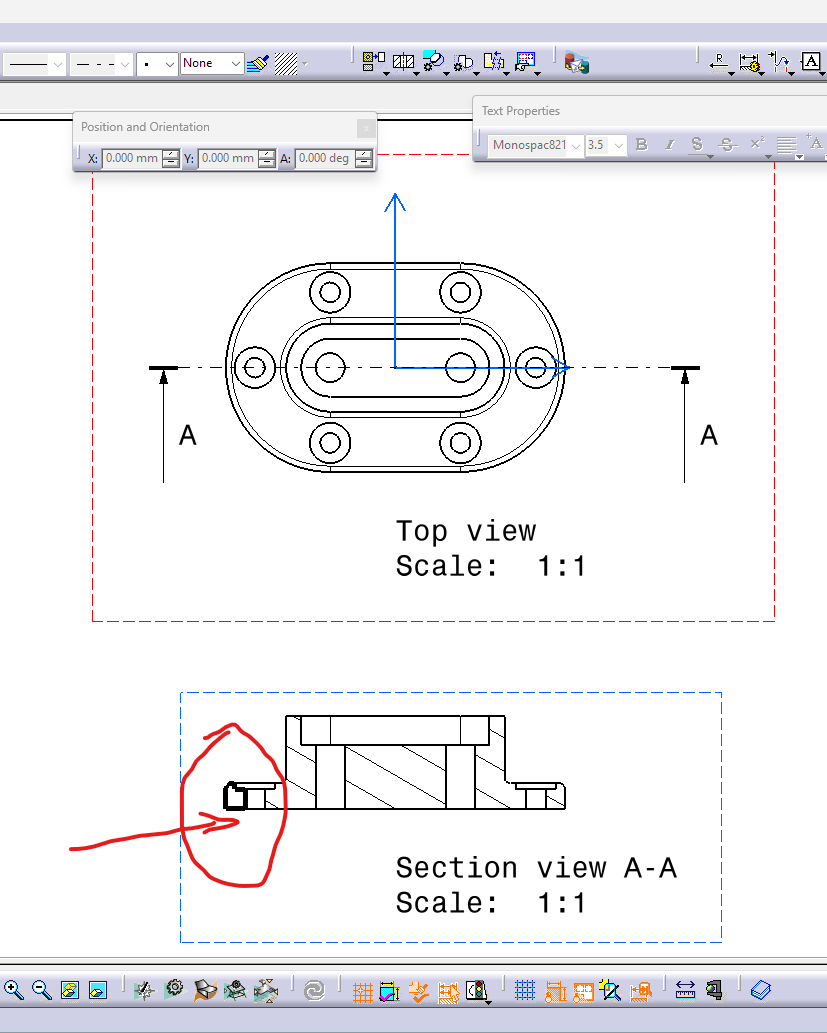Catia V5 Drafting section view kamran yunus 16 Dec, 2022 12:14 PM Why is this highlighted region showing in drafting when i take section view Screenshot 2022-12-16 161419.png Accepted answer Jack K Answered on 16 Dec, 2022 12:18 PM that area is highlighted because it is too small to draw the cross-hatch lines in. Change the pitch of the hatching to something smaller. 0 Other answers