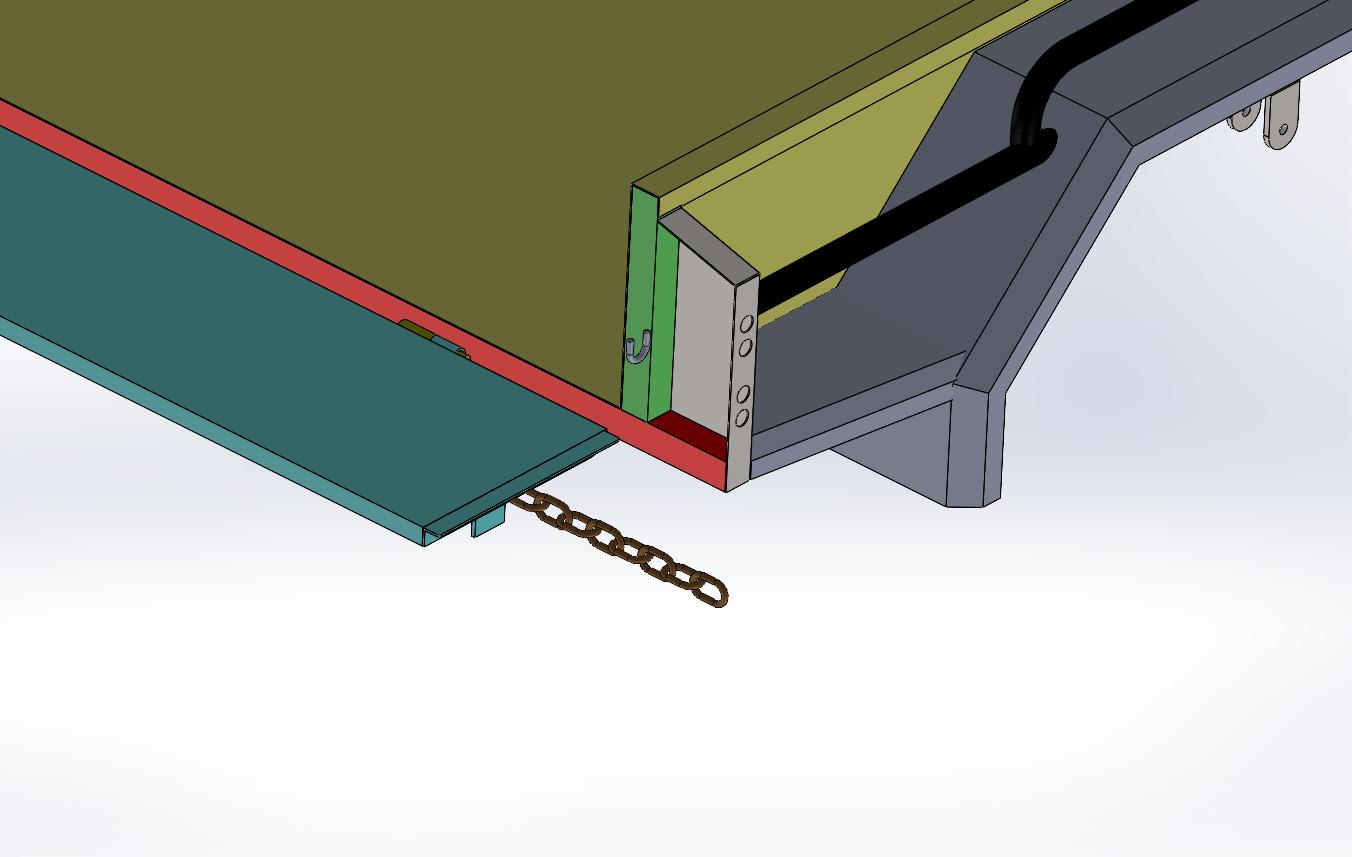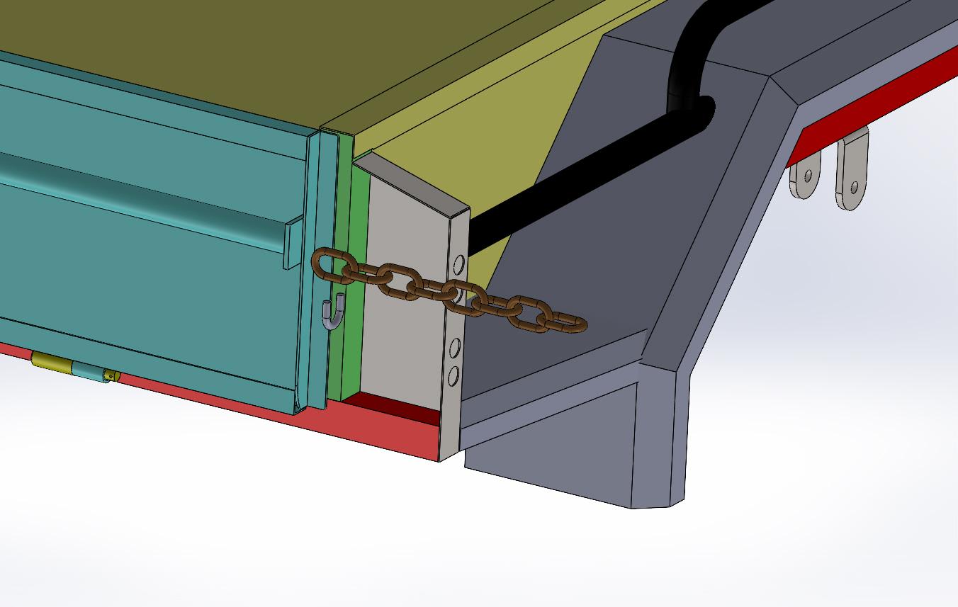 Przedstawiam moją propozycję rozwiązania tego problemu. Zamiast łańcucha proponuje zastosować linkę trzymającą drzwi naciąganą sprężyną gumową (ekspandor) schowaną w profilu zamkniętym. linka prowadzona jest poprzez ślizg lub rolkę obrotową.