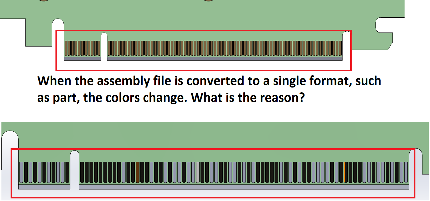 After converting the assembly format to a part file, the colors change. What is the reason?