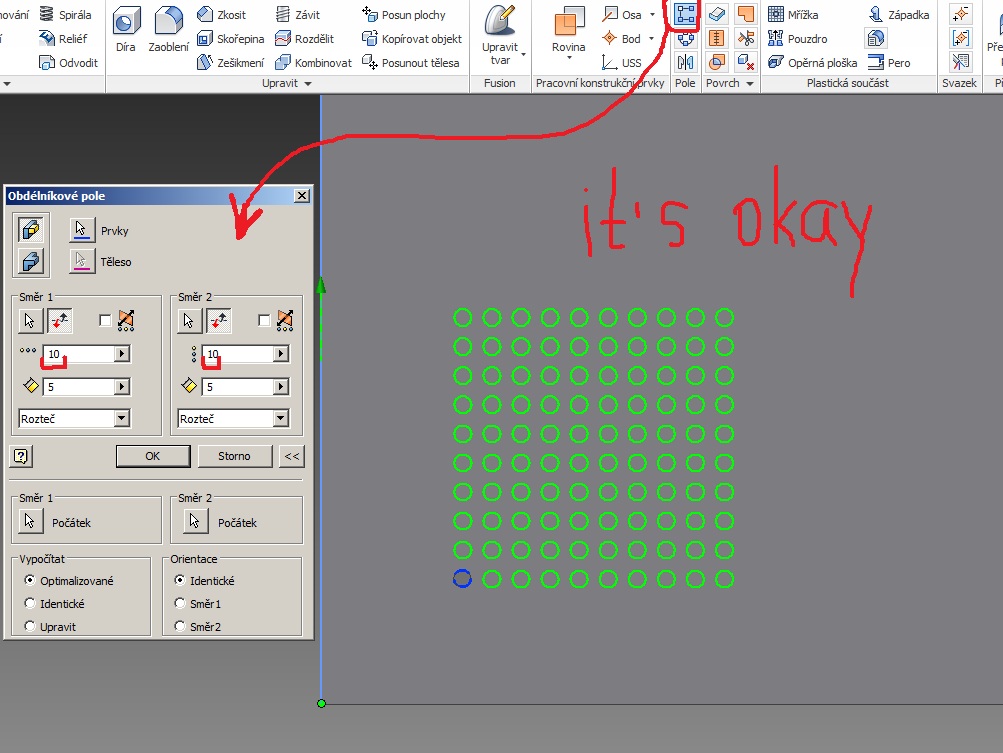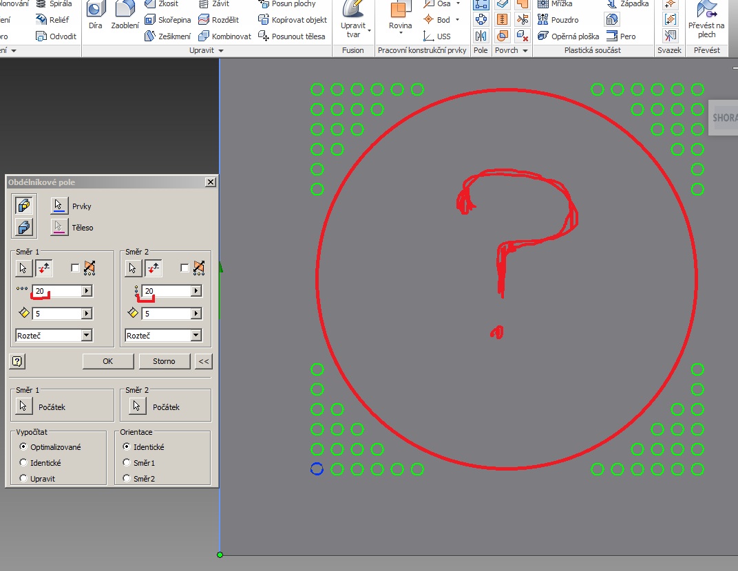 Circle in rectangular field neznajut 22 Dec, 2012 08:27 PM Hi, when I use rectangular field with many elements, I get strange circle. See screenshots. How to make 20x20 field of holes? Thank you.. B.jpg a.jpg 1 Answer William Answered on 22 Dec, 2012 08:47 PM Try distance then spacing.