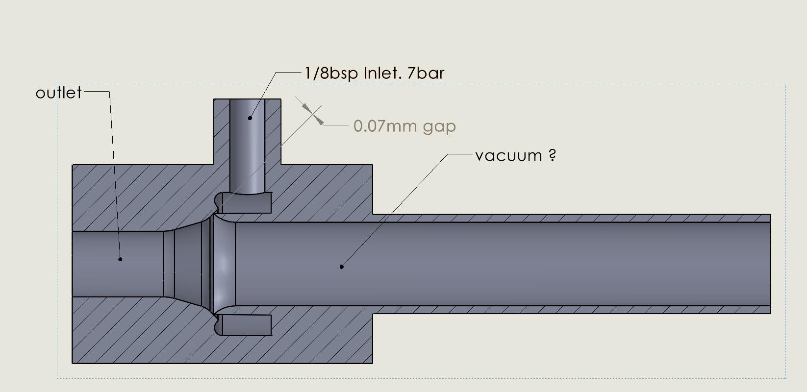 So far I've achieved some good results by experimenting with different venturi geometries but the max I can achieve is -0.2bar vacuum with no indication of the flow rate, and it works only with a short hose, 1.5m max on a 55gal barrel. My aim would be to get it to -0.5bar and at least 3m hose.