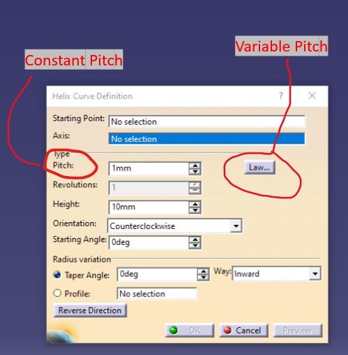 command , options missing in catia Vinoth Irudaya Nathan 21 Jul, 2023 04:29 AM I'm using Catia v5 I'm a beginner currently. in helix command of generative shape and wireframes.. where I find this tools missing.. variable pitch ? constant pitch....??!! whereas while using multisession solids. I find. AREA LAWS MISSING helix command.PNG 2 Answer Jack K Answered on 21 Jul, 2023 06:17 PM constant pitch is just PITCH. Use a Law to define a variable pitch helix.jpg Jack K Answered on 21 Jul, 2023 06:20 PM The Multi-Section SOLID tool does not have a Law option. Instead, make a Sweep Surface (does work with Laws), and then make a solid from the surface with ThickSurface or CloseSurface tools.