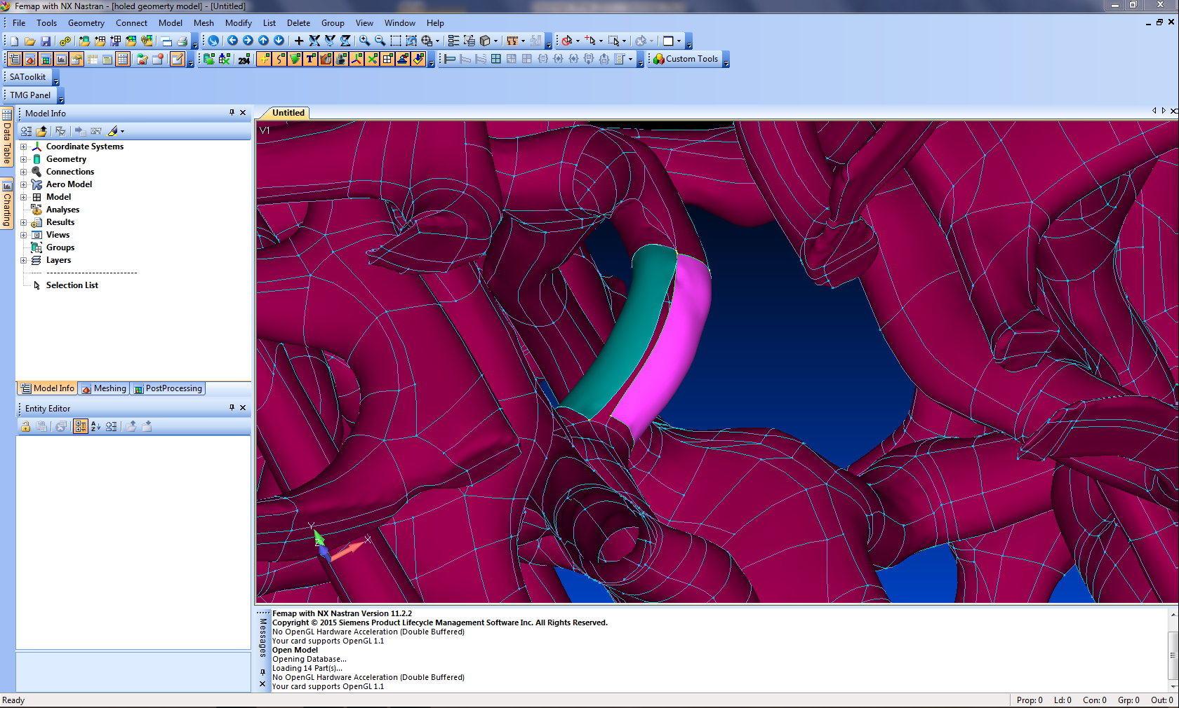 Well when I open the model in FEMAP, I see holes some part is missing. As you can see in the picture attached below. I already performed the FEA on STL file, but result is not what we were expecting, and secondly this is not the geometry. Therefore,I want to convert this file into geometry and perform FEA afterwards. The converted file you gave me was almost complete, just 8 or 9 spot are missing, rest the whole geometry is super awesome. If I am able to complete the geometry, my 80 % problem will be solved.