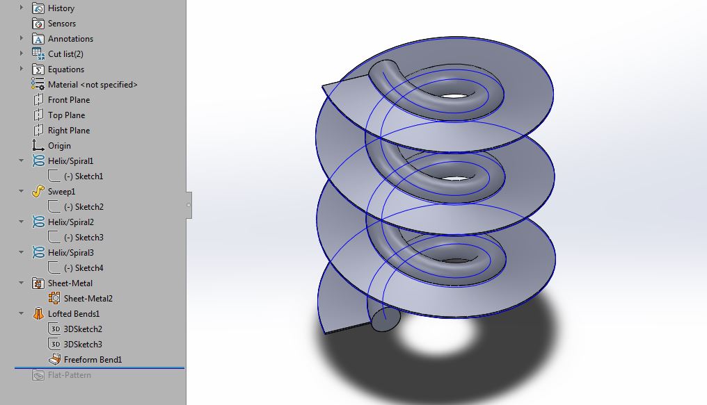 5, Convert the most recent two helices into 3D sketches in individual sketches for each.