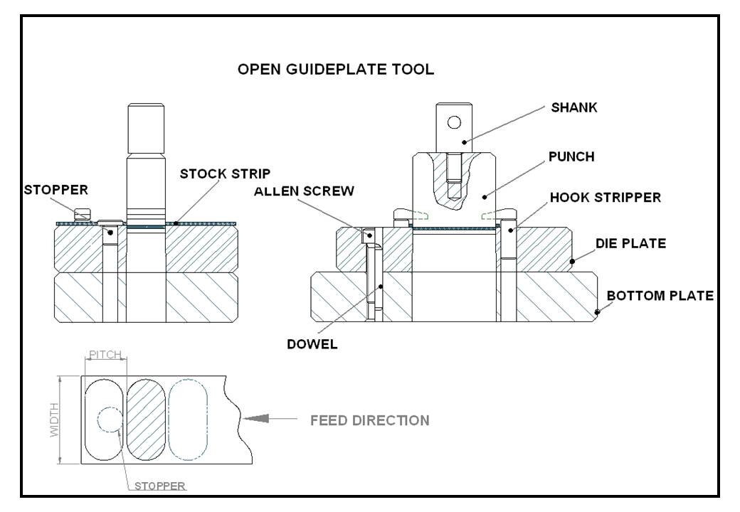 Answered with a tutorial: https://grabcad.com/tutorials/design-of-press-tools--4