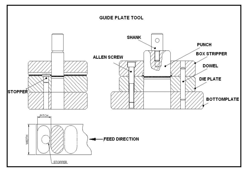 Answered with a tutorial: https://grabcad.com/tutorials/design-of-press-tools--1