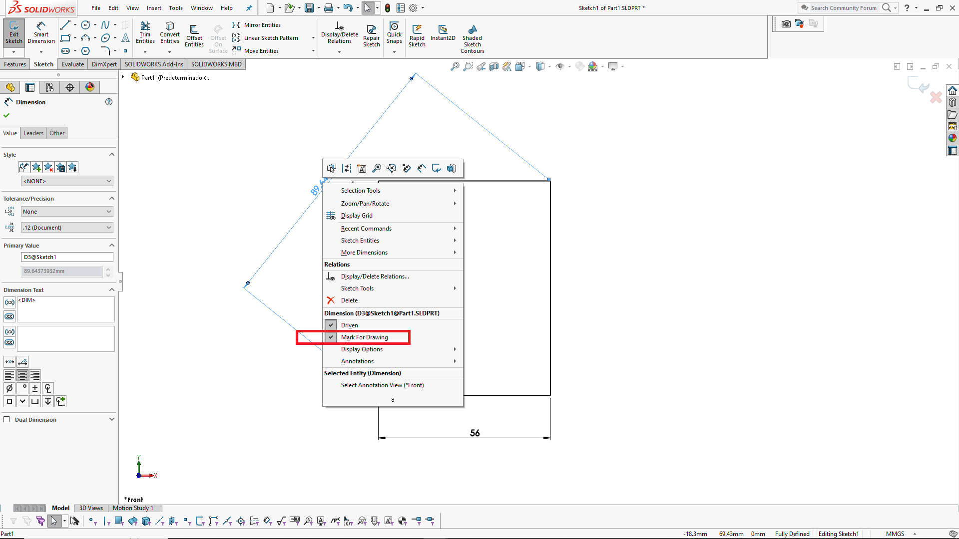 Dimension marked for drawing, How to import driven dimension into drawing in Solidworks? lololamoto 16 Mar, 2023 06:26 PM Helllo, we can automaticatly import dimension into drawing, but what about driven dimension? I can't find how to deal with this type of dimansion as they can't be marked for importation into drawing. Thanks Accepted answer Marcelo Valderrey Answered on 16 Mar, 2023 07:41 PM It is marked as any other dimension 1.png 2.png 3.png 4.png 5.png 0 Other answers