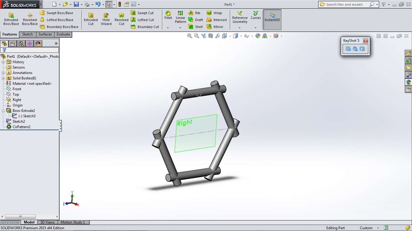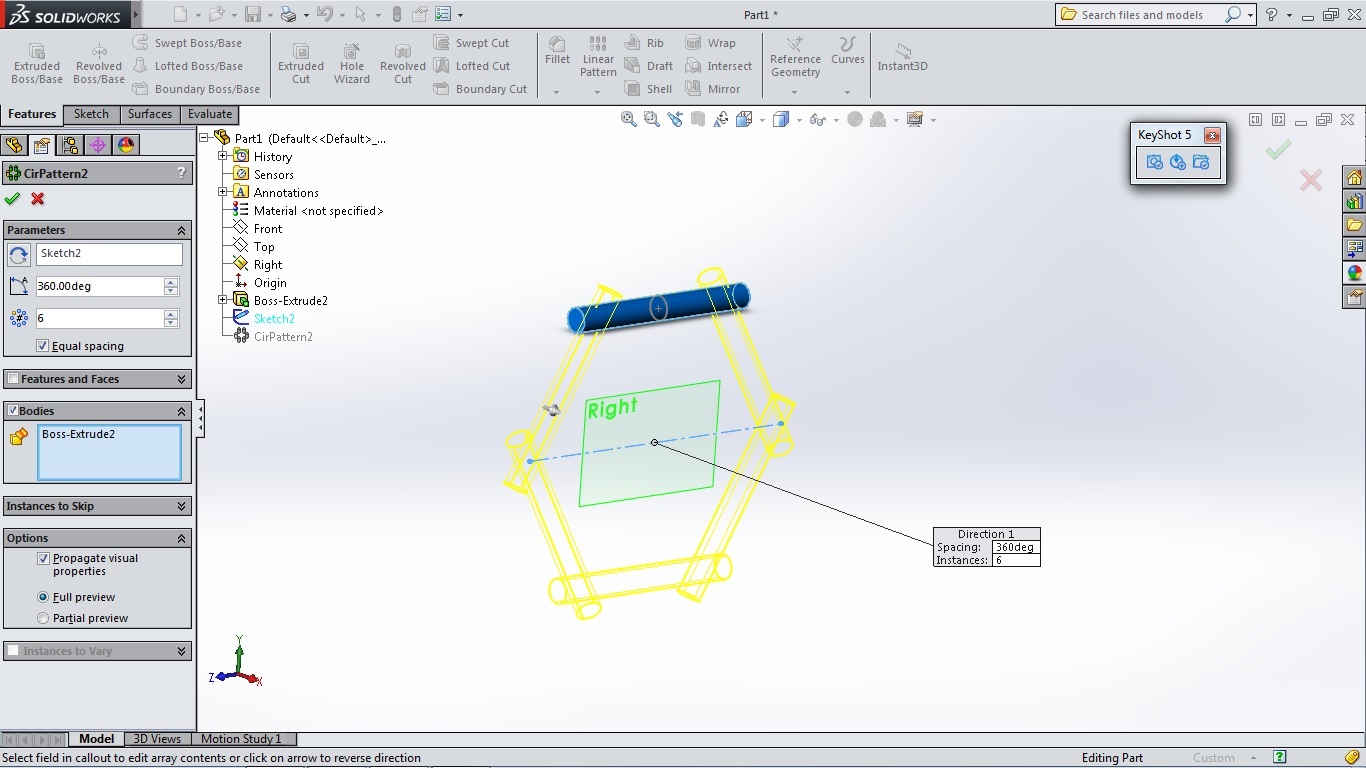 when i am modeling a carrot washer i encounter this its kinda weird, i attached photos for your references. When i use circular pattern it does not do what i want. it should look like the 6 rod in circle but it was pattern in hexagon form.