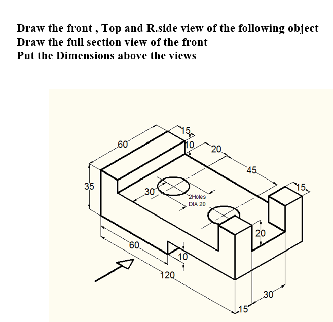 Draw the front , Top and R.side view of the following object. abdallah alshjrawi 17 Dec, 2020 03:22 PM Draw the front , Top and R.side view of the following object Draw the full section view of the front Put the Dimensions above the views Captsadsdadasure.PNG 2 Answers GAURAV SRINIVAS Answered on 18 Dec, 2020 10:16 AM PFA the file Part1.PDF only aec Answered on 18 Dec, 2020 05:16 AM More than half work is done. Please dimension yourself. Thankyou! 1 18-12-20.DXF