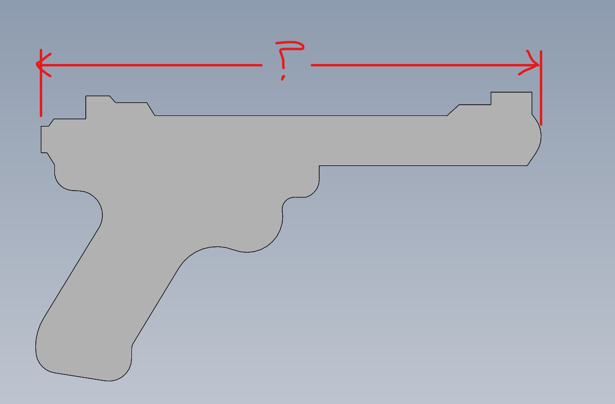 Dxf file Jim Lewis 17 Jun, 2020 05:09 PM Does anyone have a footprint cad file for the Ruger Markk II target pistol? Looking to cut out foam insert for my gun case. 1 Answer Robert H. Answered on 17 Jun, 2020 05:54 PM Does it look just like this? Also, how long is it overall end to end, and how snug do you want it to fit? length question.png
