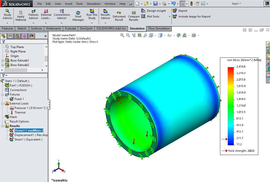 I am performing an FEA with both pressure and temperature in Solidworks.
