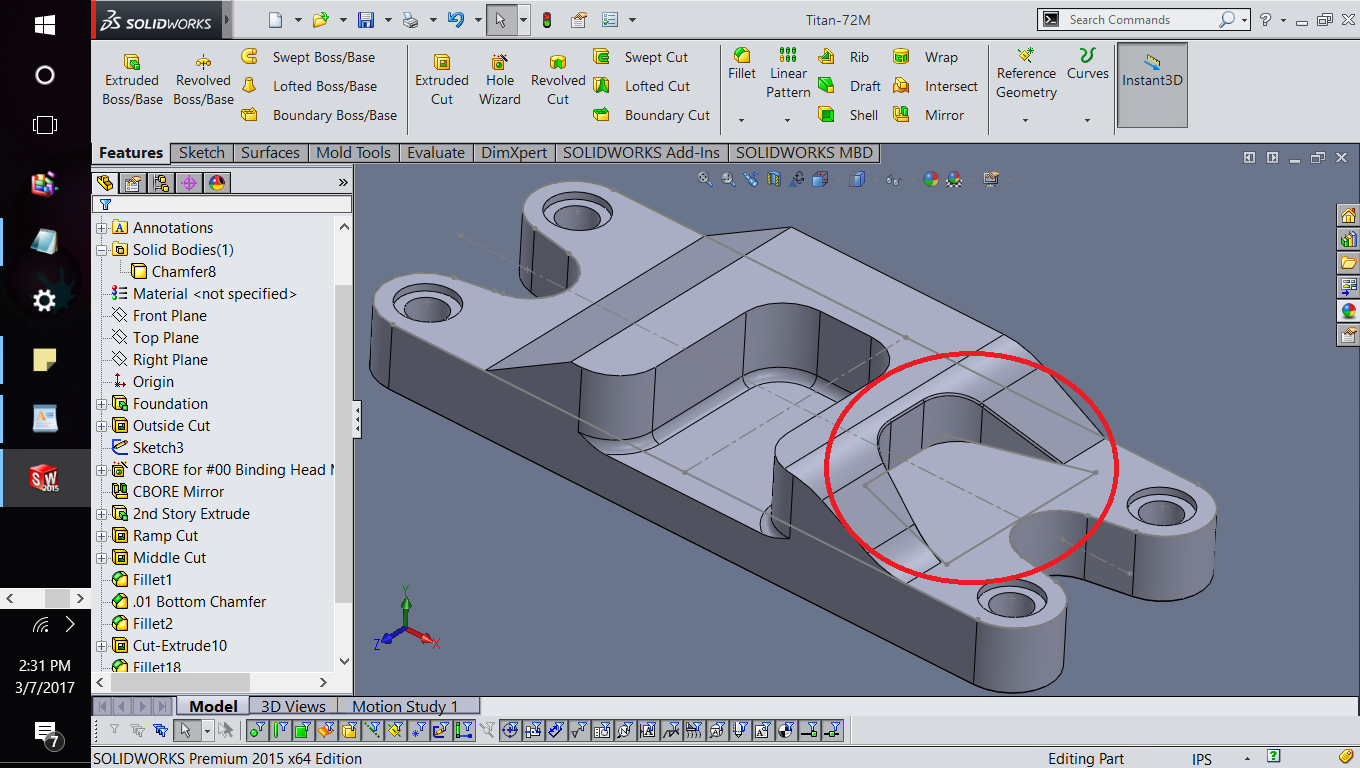 I've uploaded the part and files. The fillet and chamfer are not merging like in the geometry of the blueprint.