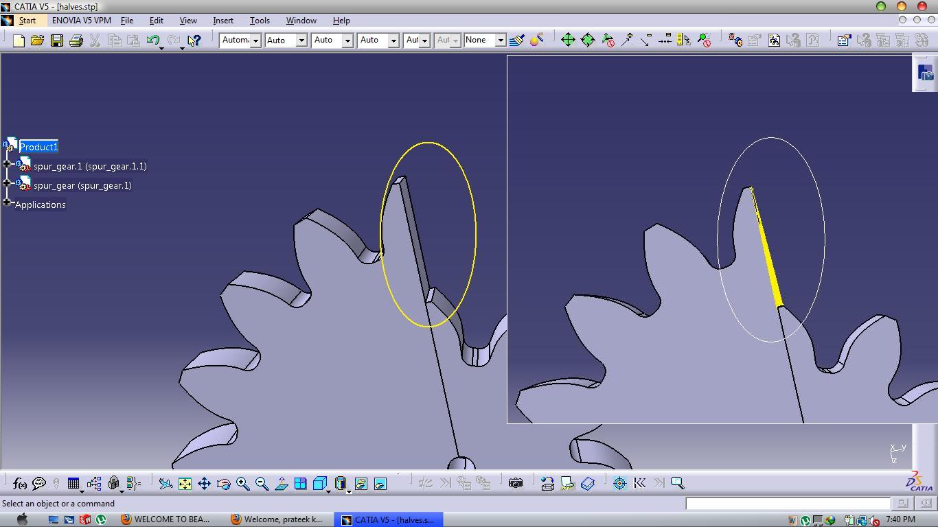 Look at the circled portion of the figure. Two half gears have been attached to make one. Now, there is a flat part on the teeth (as can be seen) which needs to be filled with material so as to get an almost continuous profile. The screenshot shows how it is and a rough idea of how it should be(shaded yellow is the material added)
