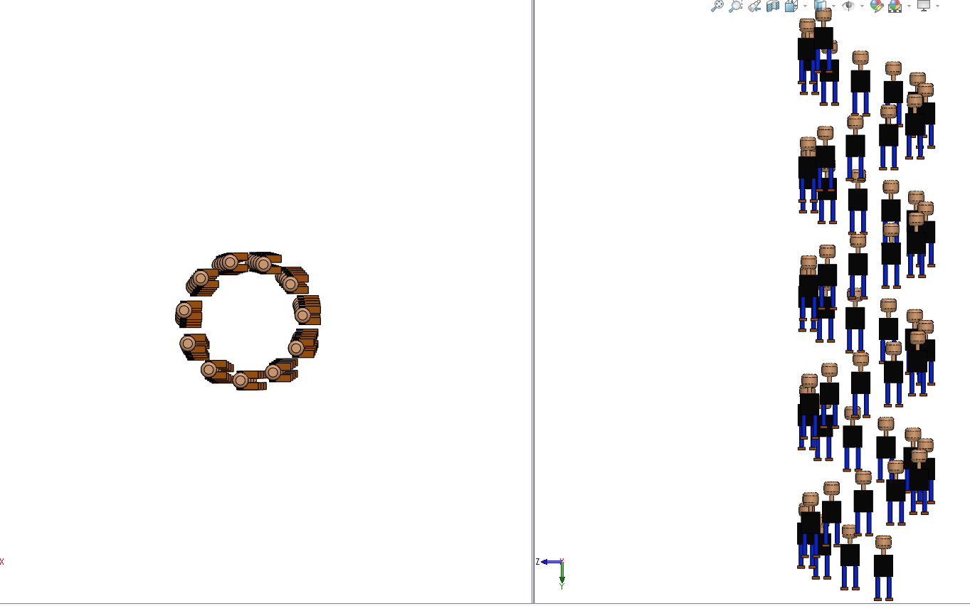 Trying still to be clearer, I want essentials a line of figures toe-to-heel that is then twisted into a helix. They are still in a single file line but now they are all twisted in different directions.