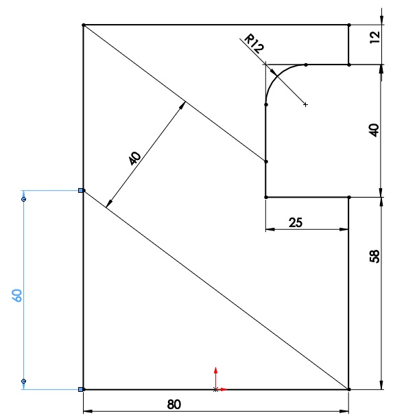 you can draw a side sketch in were the origin of the diagonal lines are the point A and B, then make them parallel an give them the 40mm dimension.
