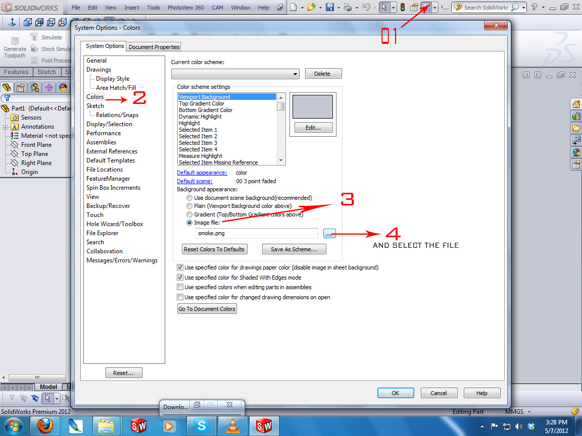 Answered with a tutorial: https://grabcad.com/tutorials/how-can-i-add-a-custom-background-image-in-solidworks