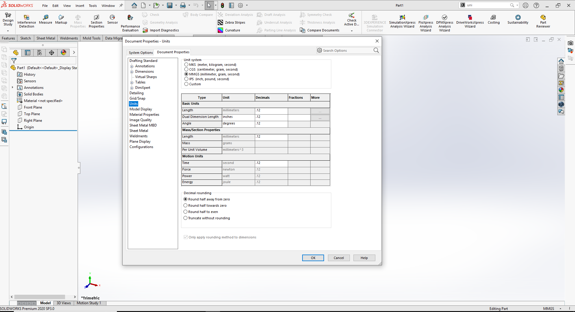 How can i change my default unit when starting new part,assembly,drawing on solidworks ? Lina AL-Faouri/CSWP/CSWP-SM 18 Oct, 2020 08:55 PM Note: changing it from document properties didn't work!!! it only changes it for once... :( Accepted answer CadCloud Answered on 20 Oct, 2020 06:13 AM Just do it like Fred say´s then make sure the Programm is loading the right template Image1.png 1 Other answer mohammad kh Answered on 19 Oct, 2020 11:04 AM tools-option-document properties-units answer.PNG
