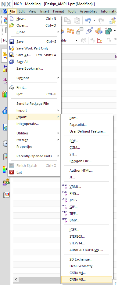 how can i convert prt data inti catia v5 data Bilal oztas 5 Oct, 2017 04:51 AM ı need help about nx (prt) data convert to catia (catpart) data. i already have NX10. 2 Answers Dinesh Kumar Answered on 28 Oct, 2017 10:27 AM Just export the file to VATIA V4/V5 Format. Refer Image attached. Untitled.png Jack K Answered on 5 Oct, 2017 01:07 PM save the NX part as a STEP file, and then open and save it with CATIA