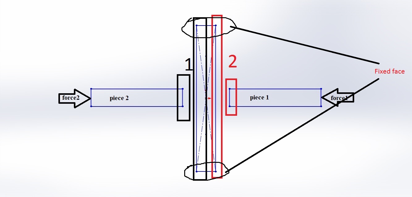 As you see in the attached photo, there are two forces and they will work one by one and not together. I want to have a contact for the piece 1 when force 1 is applying and then delete the contact and start the same procedure for force and piece 2.