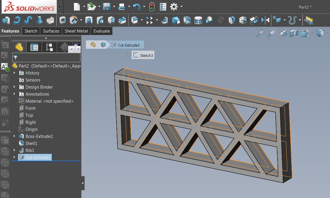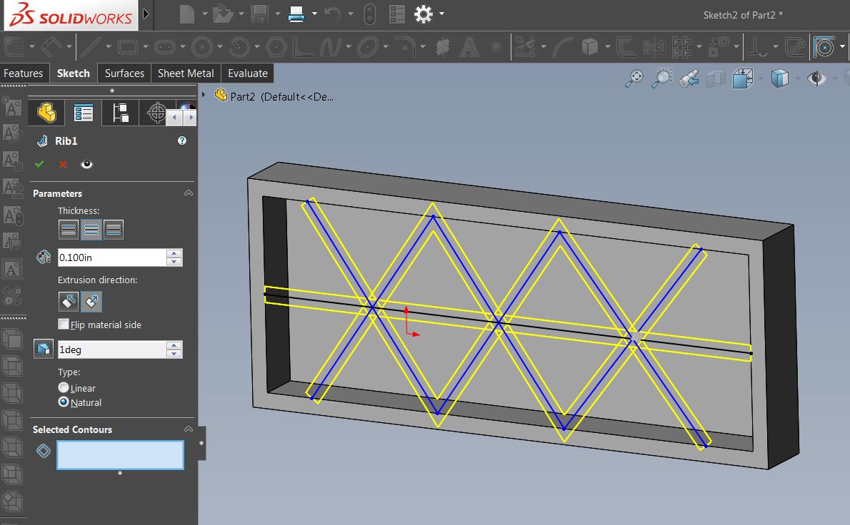 Rib features have some particular requirements to work, so there will be a step after their creation to cut away the wall needed for the ribs to project to.